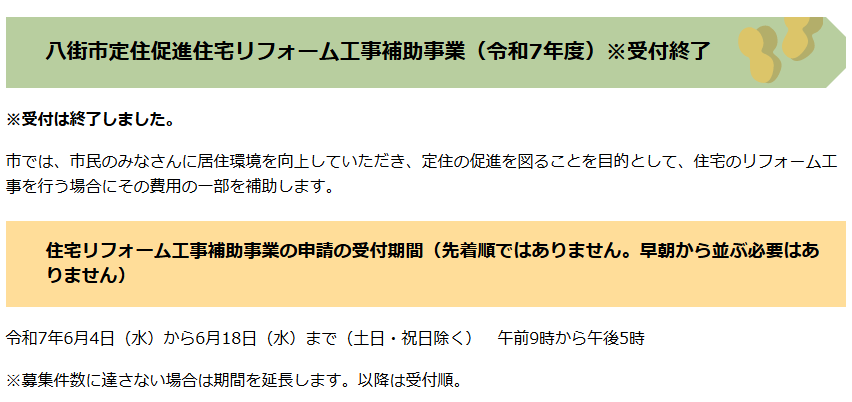八街市の広報などで目にしたリフォーム補助金が利用できないか気になっている方もおられるでしょう。八街市の住宅リフォーム支援制度の受け付けはすでに募集終了となっており、残念ながら利用できません。