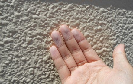 チョーキング現象とは、塗膜(塗料の膜)中の樹脂の劣化により引き起こる現象で、紫外線や雨風、直射日光などが要因とされています。これは、外壁を触ったときに白い粉が手に付くかどうかで見分けることができます。