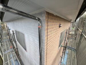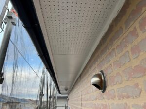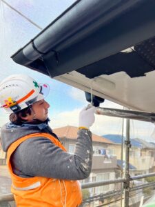 塗装前は、軒天が黒色でしたが今回の塗装で白色に変えます!