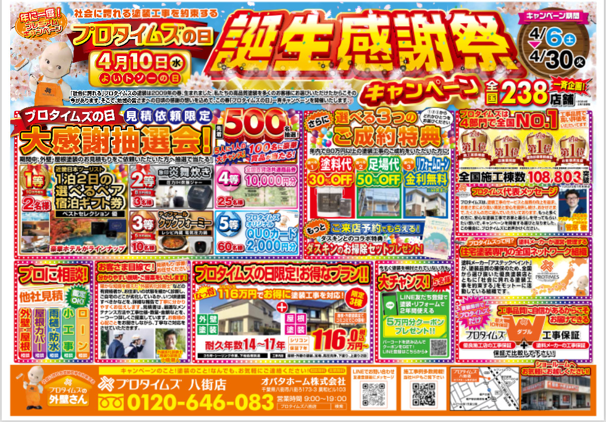 4月10日(良い塗装の日)を「プロタイムズの日」として超お得なキャンペーンを行います。
