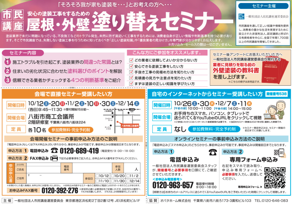 10月12・20日八街商工会議所 屋根・外壁塗り替えセミナー