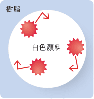 白色顔料ラジカルが発生しにくく、ラジカルが発生した場合にもシールド層がラジカル放出を防ぐため、樹脂の破壊を抑える。