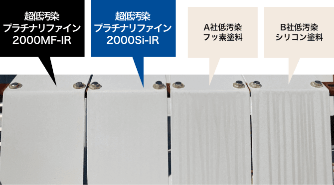 超低汚染プラチナリファインシリーズは美しさが長く続くため、汚れによる熱の吸収を抑制。一般的な遮熱塗料に比べて長く遮熱効果を発揮します。