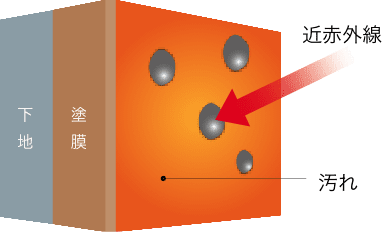 一般の遮熱塗料は、経年とともに付着した汚れが熱を吸収するため、徐々に遮熱効果が低下していきます。